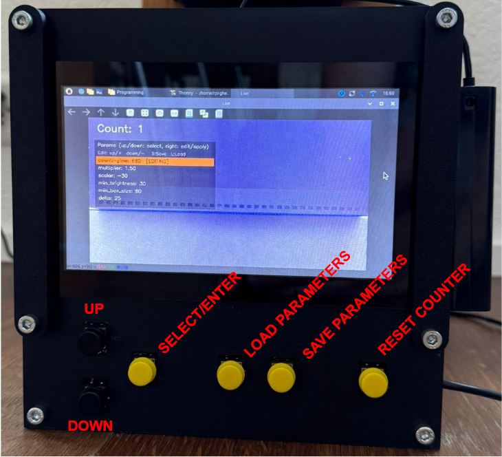 The constant parameters used by the software to differentiate and count the larvae can be tuned to adjust the system to the existing lighting conditions.